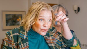 In Carmarthen, friends Joy and Thembi hunt charity shop bargains, clash over risky buys and pin their hopes on bold upcycles in a tense live online auction.
