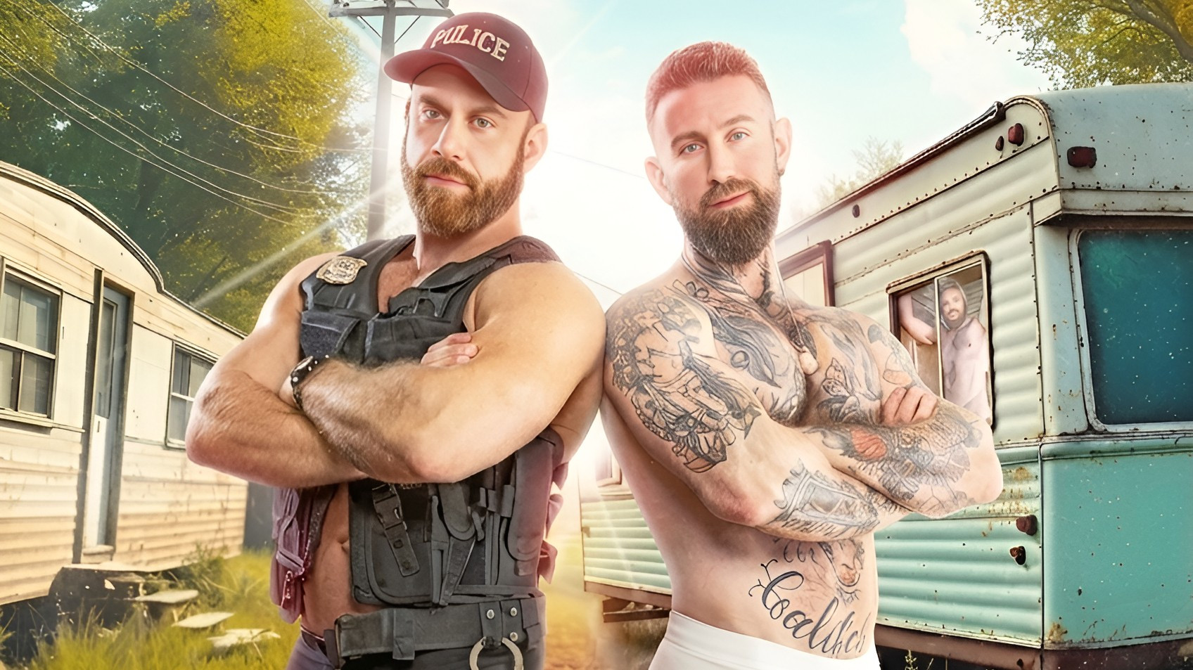 The story follows the encounter between an officer (played by Devon Franco) and the local residents, exploring situations of tension and confrontation that unfold in a rugged, isolated environment. Directed by Ryan Brian, the production utilizes an “outdoor” aesthetic and the mobile home backdrop to frame a narrative of desire and power, characteristic of high-budget productions from Raging Stallion Studios.